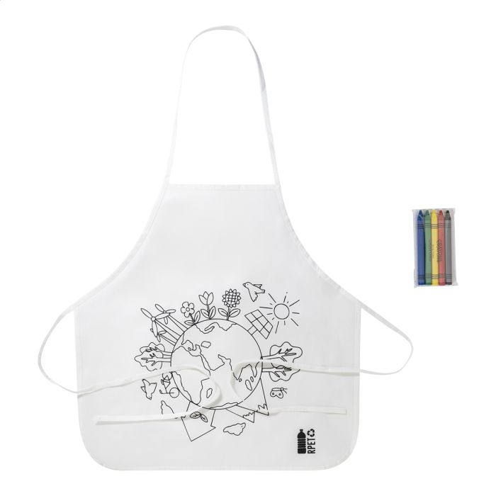 Șorț de colorat, pentru copii, din material nețesut RPET, cu 5 creioane colorate.