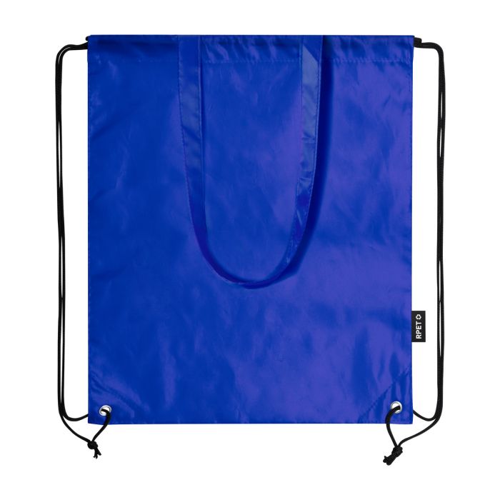 Rucsac din poliester RPET, cu șnur cu mâner lung. Poate fi folosit și ca sacoșă de cumpărături. Cu etichetă distinctivă RPET.