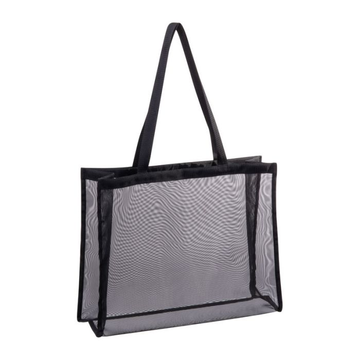 Sacoșă mare, transparentă, pentru plajă sau cumpărături, din poliester, cu mânere lungi.