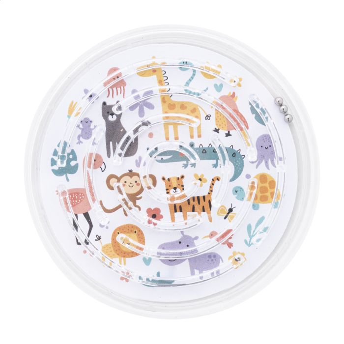Joc labirint rotund, din PS reciclat, cu trei bile metalice. Cu inserție personalizată din hârtie color. Prețul include imprimare digitală pe ambele părți. MOQ: 100 buc.