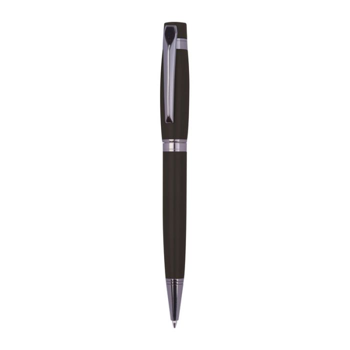 Stilou cu bilă Mark Twain din metal cu logo discret Mark Twain pe clip și lungime de scriere de 800 m, mină albastră. Ambalat într-o cutie pliabilă cu logo lucios Mark Twain.