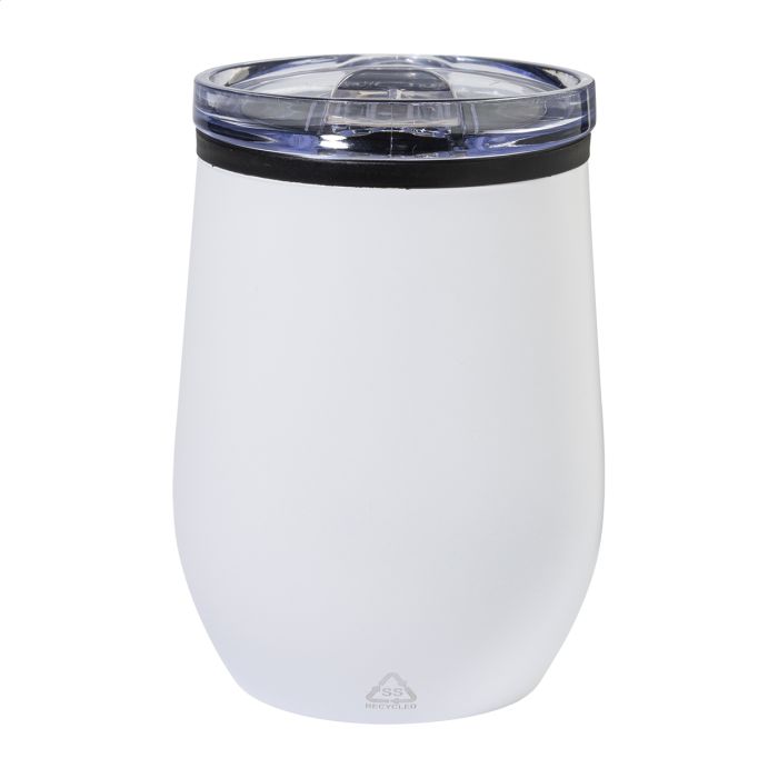 Pahar termic, din oțel inoxidabil reciclat, cu pereți dubli, interior din PP și capac din PS. 350 ml.