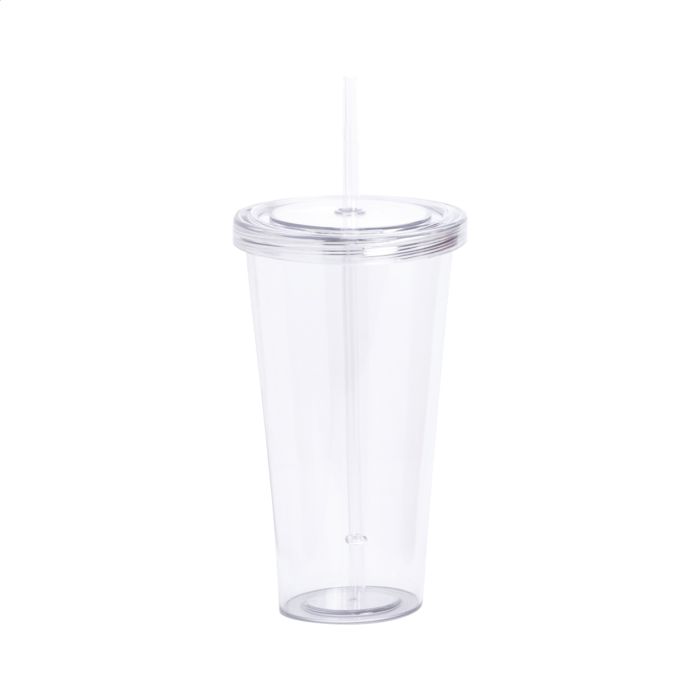 Pahar din plastic, transparent, cu capac și pai, 750 ml.