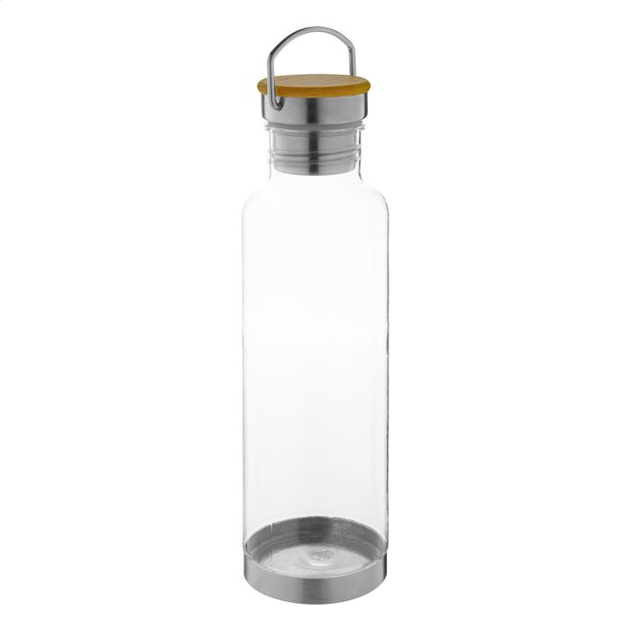 Sticlă din Tritan, cu fund din oțel inoxidabil și capac de transport cu inserție din bambus. 800 ml. Fără BPA. Nu este potrivită pentru băuturi carbogazoase.