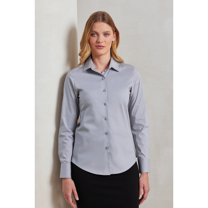 WOMEN'S STRETCH-FIT COTTON POPLIN LONG SLEEVE SHIRT