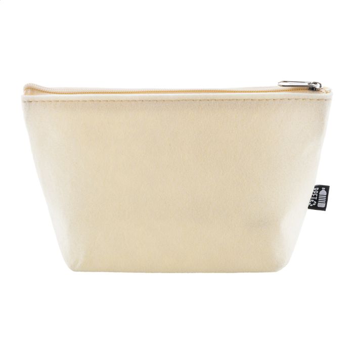 Geantă pentru cosmetice, din fetru RPET, cu fermoar. Cu etichetă distinctivă din RPET.