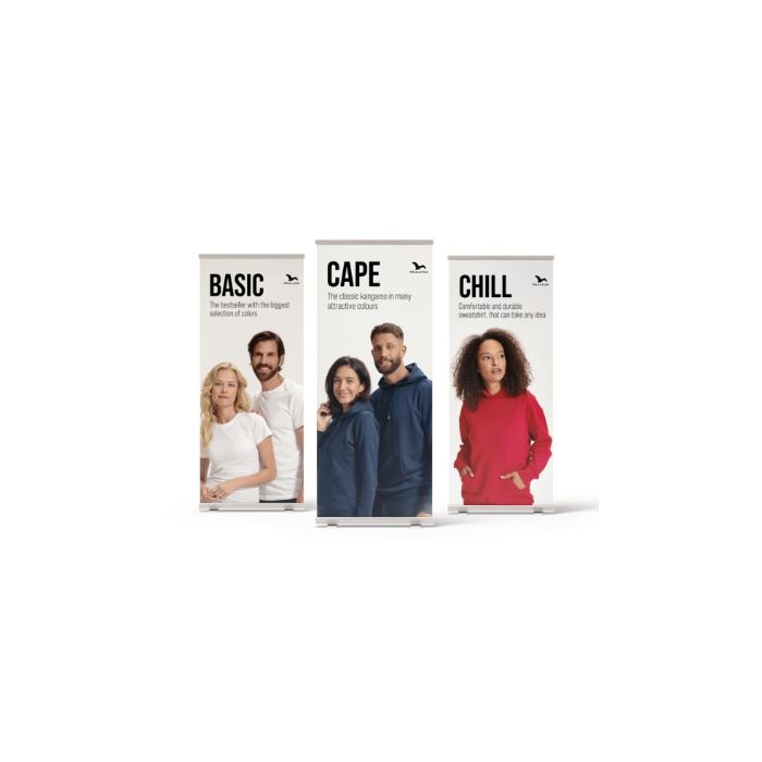 ST - Roll-up STAGE în format 80 x 200 în engleză., CH - Roll-up CHILL în format 80 x 200 în engleză., BE - Roll-up BEANIE în format 80 x 200 în engleză., BA - Roll-up BASIC în format 80 x 200 în engleză., PO - Roll-up PIQUE POLO în format 80 x 200 în engleză., CA - Roll-up CAPE în format 80 x 200 în engleză.