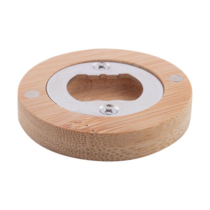 Deschizător de sticle, din bambus, în formă rotundă, cu magneți.