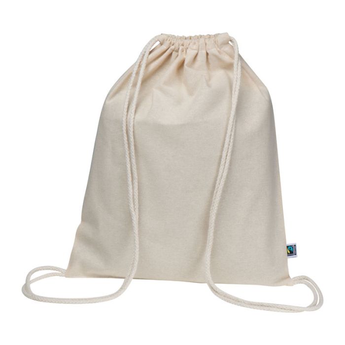 Rucsac sport cu șnur Fairtrade din bumbac (180g/m²) cu etichetă Fairtrade.