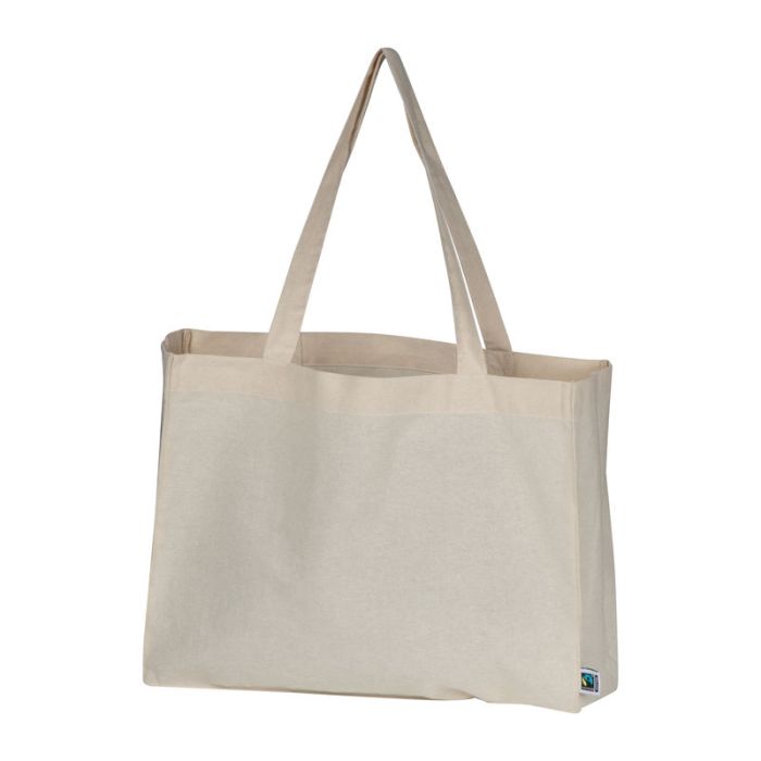 Geantă de cumpărături mare și spaţioasă din bumbac (180 g/m²) cu etichetă Fairtrade.