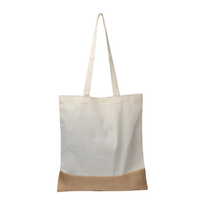 Geantă de cumpărături certificată Oeko-Tex® STANDARD 100 din bumbac (140g/m²) și iută.