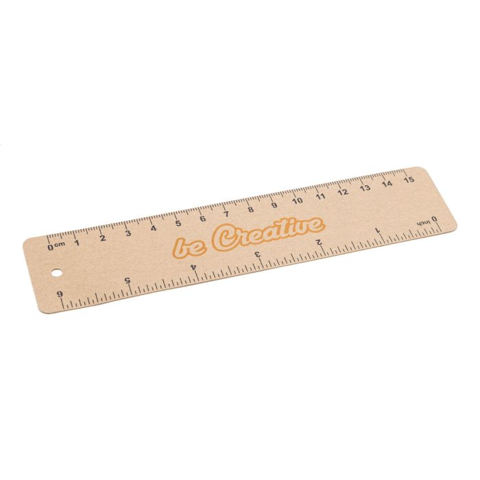 Riglă din hârtie kraft, realizată la comandă, cu grafică imprimată color pe față, 15 cm. MOQ: 100 buc.