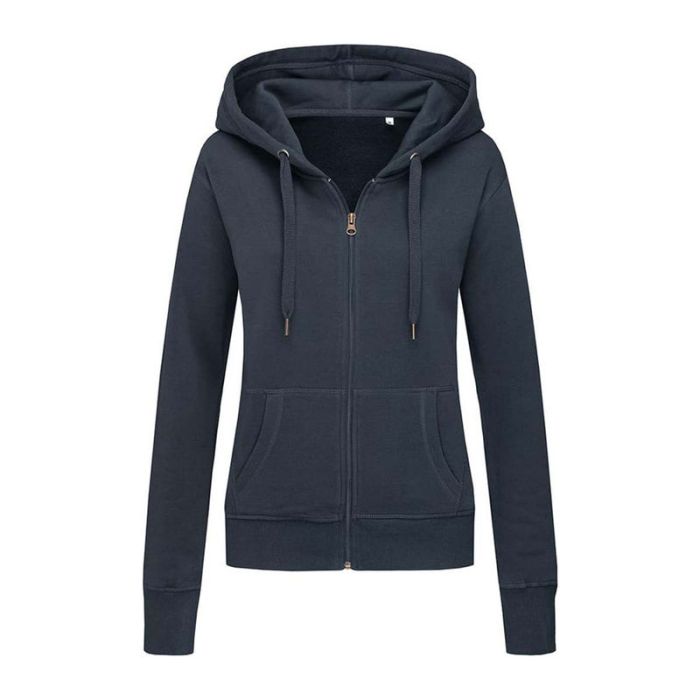 Fashionable hooded sweatjacket for women made of warm and soft cotton-polyester-blend with a modern and sporty design, kangaroo pocket, wide rib cuffs and wide draw cord. Brushed inside for extra comfort and warmth.