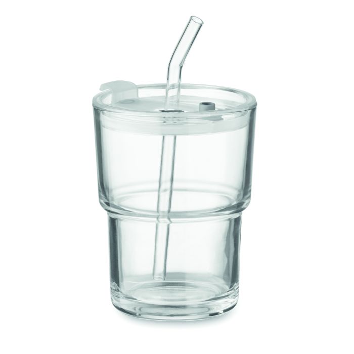 Pahar de sticlă cu capac, inclusiv pai de sticlă detașabil. Slot pentru pai și capac fără scurgeri cu deschidere directă a băuturii. Capacitate 400 ml.