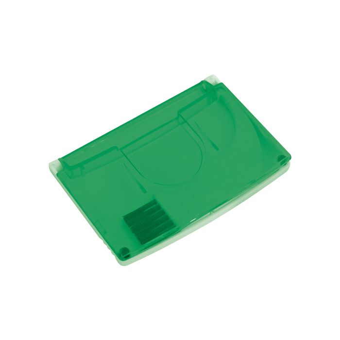 Suport pentru bancnote din plastic transparent colorat cu perie pentru curățarea tastaturii.