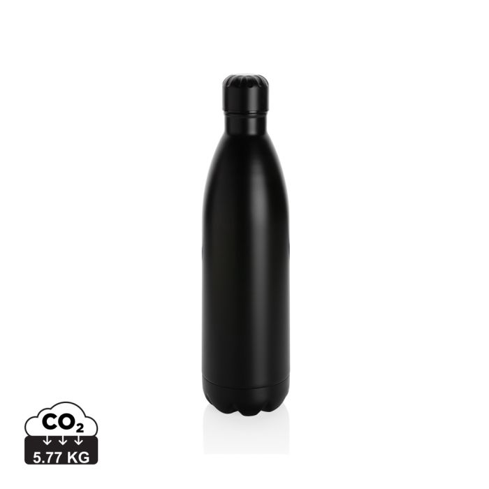 Elevate your daily water intake with this solid colour vacuum insulated stainless steel bottle. The bottle keeps chilled beverages cold for up to 15 hours and hot drinks warm for up to 5 hours. With a base that fits in most cup holders, this sleek looking water bottle will keep you hydrated on the go wherever you are. With its large capacity of 1 litre, it is ideal for a day trip.