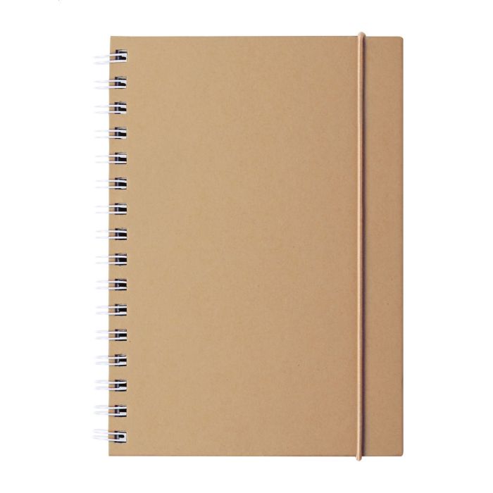 Carnețel spiralat A5 cu copertă din carton reciclat, bandă de cauciuc, 80 file dictando.