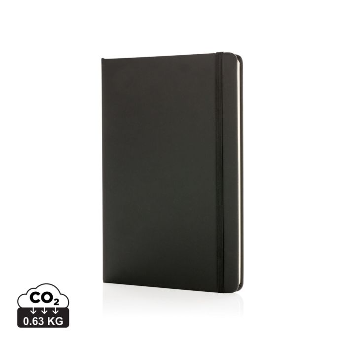 Ruled A5 hardcover PU classic notebook with elastic closure and black bookmark ribbon. 144 pages of 70g/m2 paper inside. Cream coloured pages.