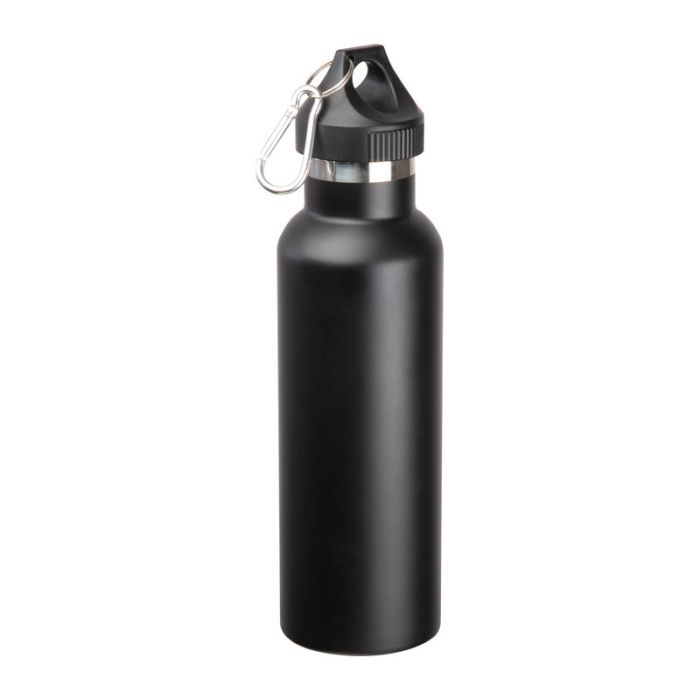 Sticlă de băut cu perete dublă din oţel inoxidabil, izolare cu vid, cu suprafaţă mată și închidere etanșă cu filet, inclusiv carabină. Capacitate de 500 ml.