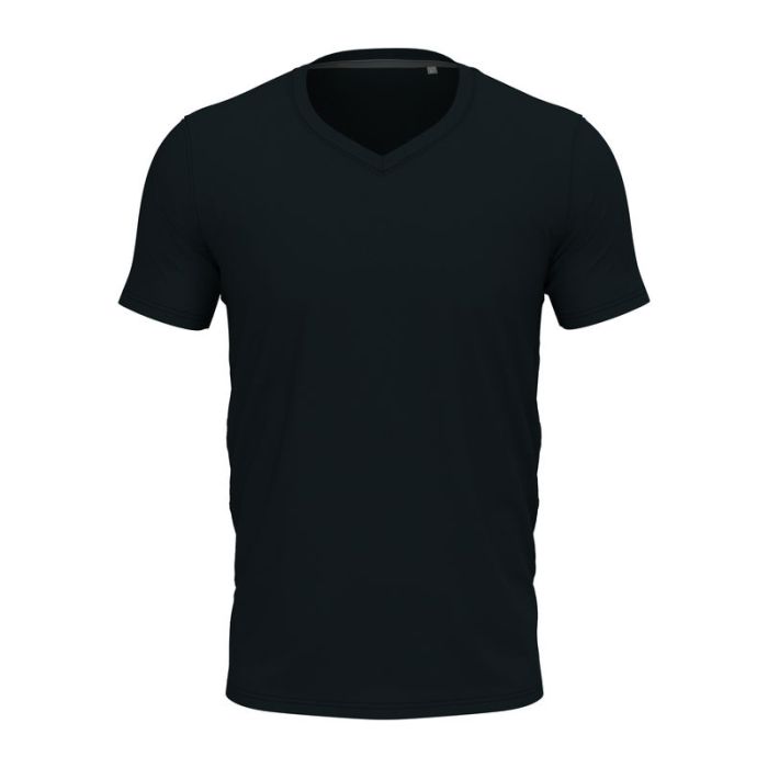 Fitted V-neck T-shirt for men, made of a soft and sleek cotton-elastane-blend with contrast neck tape.