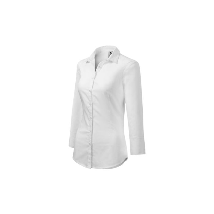 model cambrat ce prezintă cusături laterale, partea din spate este prevăzută cu două cusături verticale, cusături la nivelul pieptului și taliei, gulerul cămășii este format din două părți, marginea frontală este prevăzută cu fentă, mâneci 3/4 cu manșete cu o croială dreaptă și șlițuri, nasturi de culoarea materialului de bază (1 nasture de rezervă), marginea inferioară este curbată