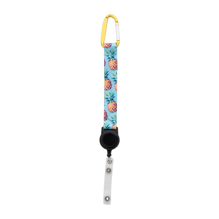 Breloc personalizat, din poliester RPET, cu grafică imprimată prin sublimare pe ambele părți. Cu etichetă interioară RPET, suport telescopic, carabină din aluminiu și breloc metalic. MOQ: 100 buc.