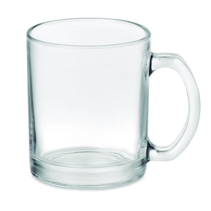 Cană din sticlă, cu capacitate de 300 ml, cu acoperire specială pentru sublimare.