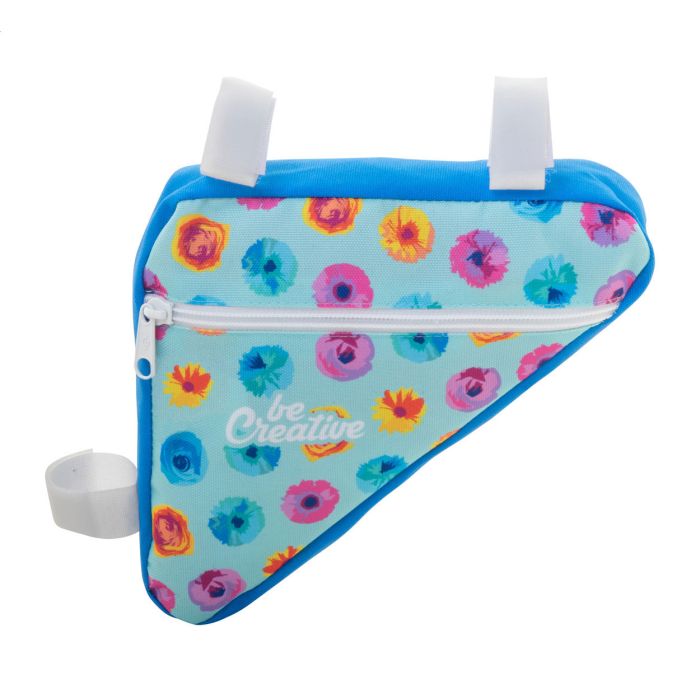 Geantă pentru cadru de bicicletă, realizată la comandă, cu fermoar, din poliester 600D RPET, cu curele velcro reglabile. Cu grafică imprimată prin sublimare integrală ?i etichetă distinctivă RPET. MOQ: 25 buc.
