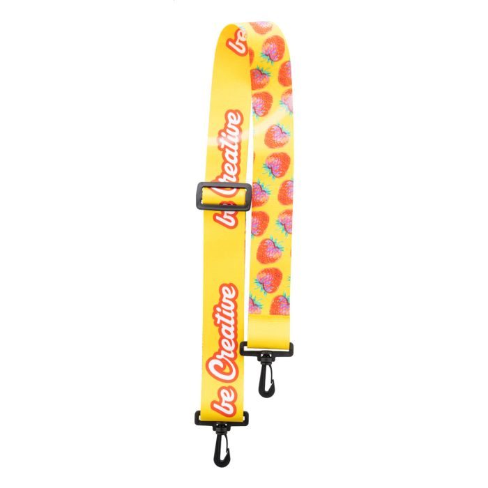 Curea de umăr, din poliester, personalizată, reglabilă pe lungime, cu carabine din plastic. Cu grafică imprimată prin sublimare pe ambele fețe. Potrivit pentru genți de umăr, genți pentru documente sau genți de sport. MOQ: 50 buc.