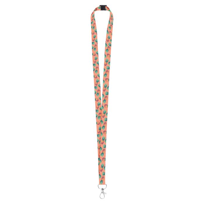 Lanyard din poliester de 15 mm lățime, cu carabină metalică și cataramă de siguranță. Prețul include personalizarea cu sublimare pe ambele fețe. Cantitate minimă de comandă: 100 buc.