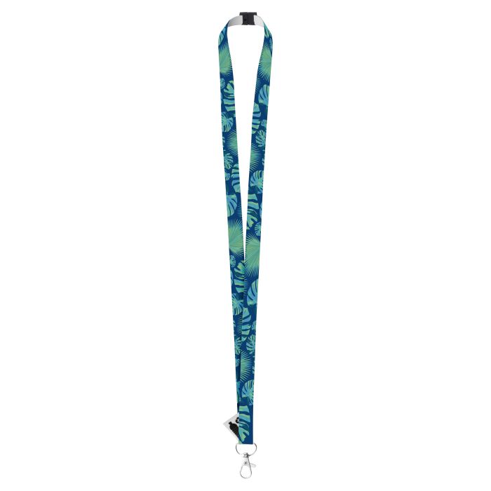 Lanyard de 15 mm latime, din RPET, cu carabina metalica si catarama de siguranta. Pretul include sublimarea pe o fata. Cantitate minima de comanda 100 buc.
