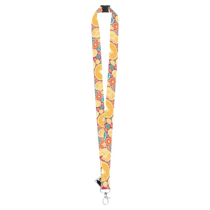 Lanyard din poliester RPET, cu carabina metalica si catarama de siguranta. Pretul include sublimarea pe ambele fete. Cantitate minima de comanda 100 buc.