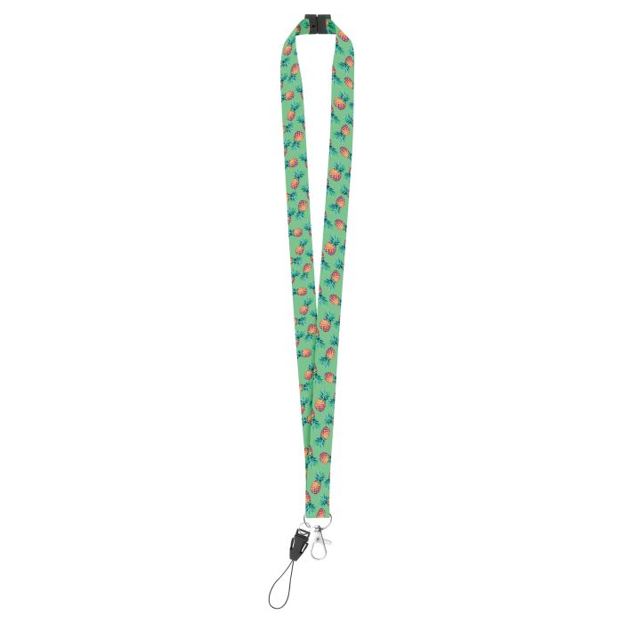 Lanyard din poliester cu design unic, carabină metalică, șnur pentru telefon mobil, cataramă de siguranță. Sublimare pe ambele feţe. Cantitate minimă de comandă: 100 buc.
