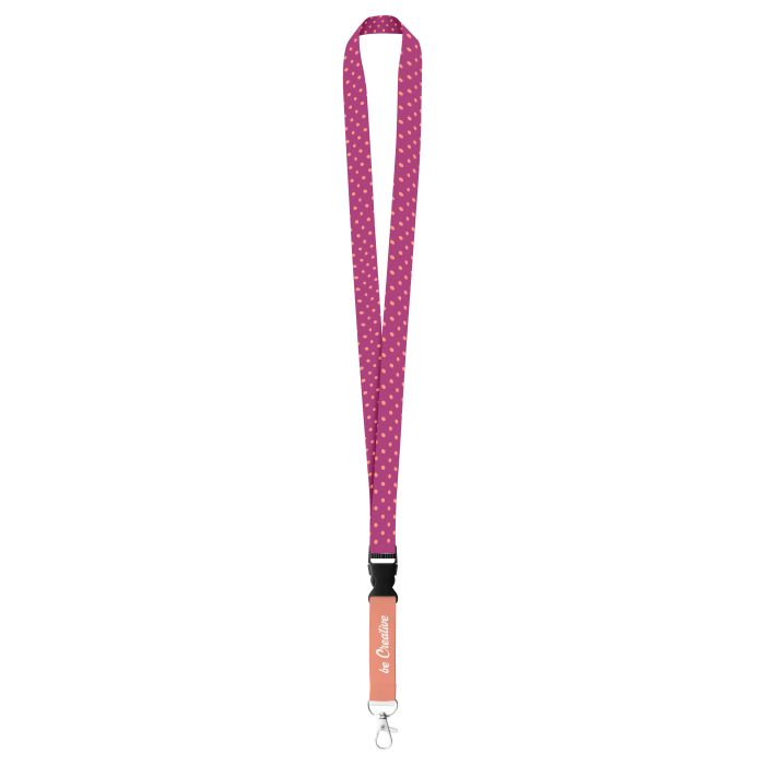 Lanyard cu design unic, carabină metalică detașabilă, clips de siguranță la cerere(contracost). Sublimare pe ambele feţe. Material: poliester. Cantitate minimă de comandă: 100 buc.