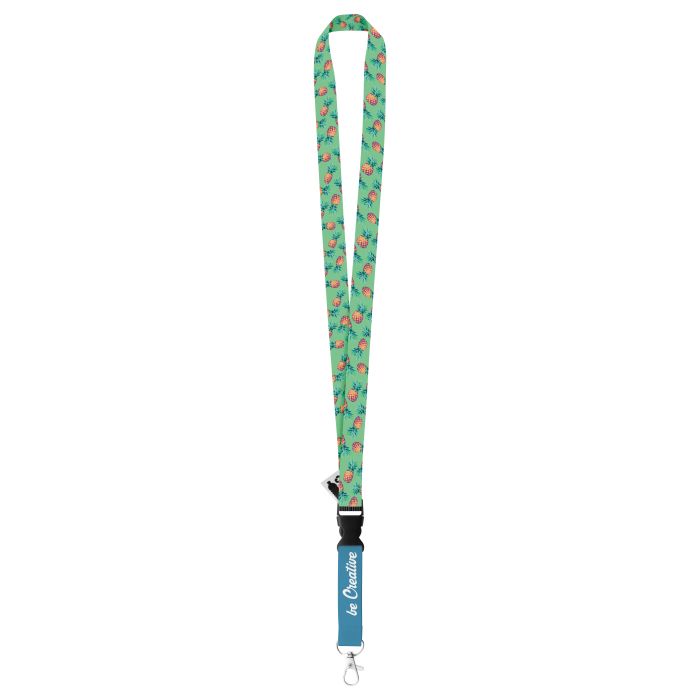Lanyard din poliester RPET, cu carabina metalica detasabila. Pretul include sublimarea pe ambele fete. Cantitate minima de comanda 100 buc.