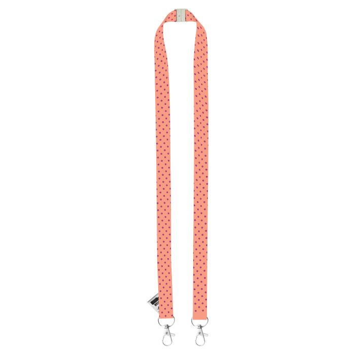 Lanyard personalizat, din poliester, cu două carabine metalice și cataramă de siguranță din plastic. Cu sublimare pe ambele fețe. Cantitate minimă de comandă 100 buc.