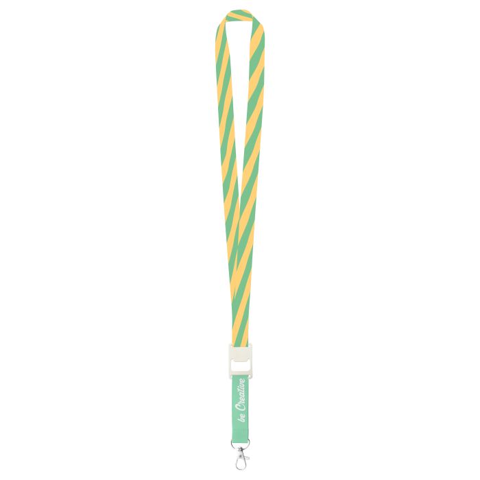 Lanyard cu sublimare, din poliester, cu carabină și desfăcător sticle din metal. Prețul include sublimarea pe ambele feţe. Cantitate minimă de comandă: 100 buc.