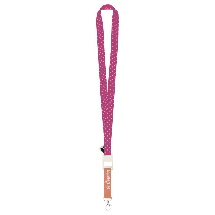 Lanyard din poliester RPET, cu carabina metalica si desfacator sticla. Pretul include sublimarea pe ambele fete. Cantitate minima de comanda 100 buc.