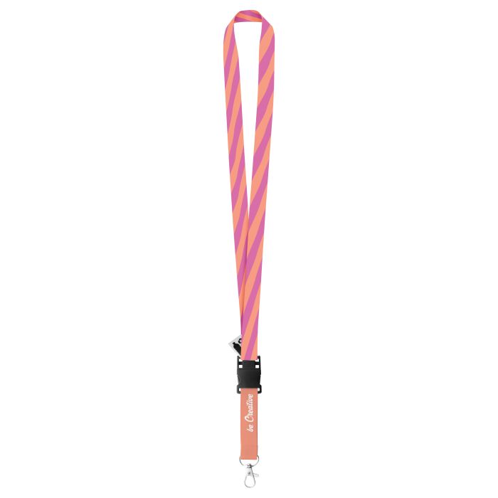 Custom made, polyester lanyard with detachable metal carabiner. With built-in 8 GB USB flash drive inside the plastic buckle. With sublimation printed graphics on both sides. MOQ: 100 pcs. USB 2.0.