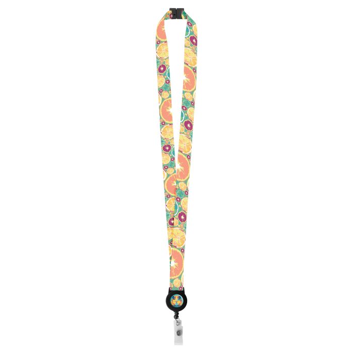 Lanyard din poliester cu suport telescopic pentru ecuson și cataramă de siguranță. Prețul include personalizarea cu sublimare pe ambele fețe. Cantitate minimă de comandă: 100 buc.