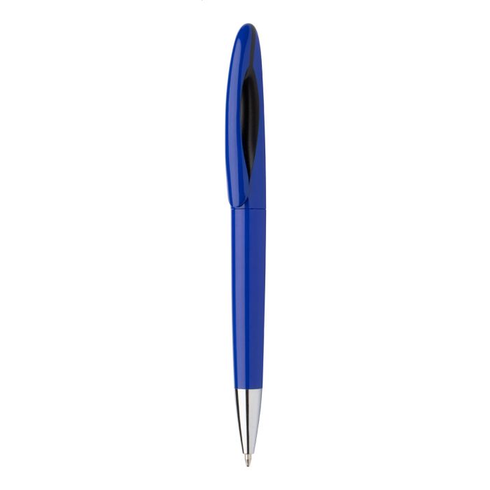 Pix din plastic cu mecanism twist, vârf cromat. Mină albastră.