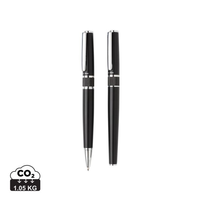 This luxury pen set brings elegance and style to your writing. The set consists of a ball pen and roller ball with blue ink in a beautiful gift box with embossed logo.The pen has a Dokumental ink refill with a t/c ball for ultra smooth writing. The roller ball has a blue Dokumental ink refill. Average writing length for both pens is 1200 metres.
