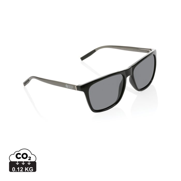Luxury polarised sunglasses made with RCS certified recycled PC frame and aluminum temples. Total recycled content: 37% based on total item weight. RCS certification ensures a completely certified supply chain of the recycled materials. Including GRS certified recycled RPET sleeve to store the glasses in.The lenses are polarised which eliminates reflecting sunlight, making it ideal for driving a car or during other sunny summer or winter outdoor activities. Conform EN ISO 12312-1, UV 400 and CAT 3. Packed in a FSC® gift packaging.