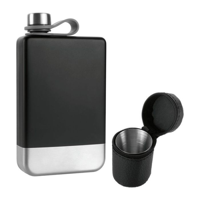 TAHAT hip flask set - Negru - 8 × 14,5 × 2,5 cm / 6,5 × 4 cm