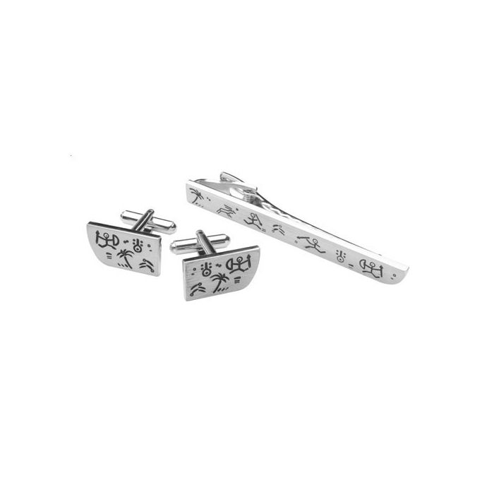 Model Tahiti, set de ace de cravată și manșete din metal.
