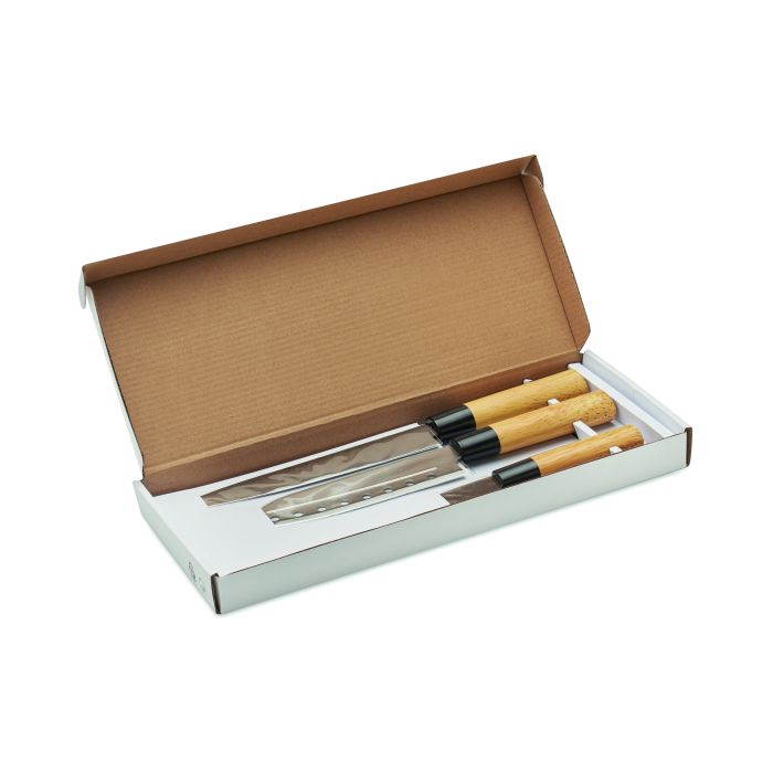 Set 3 cuţite în stil japonez, cu lamă din oțel inoxidabil și mâner din plastic PP, în cutie cadou.