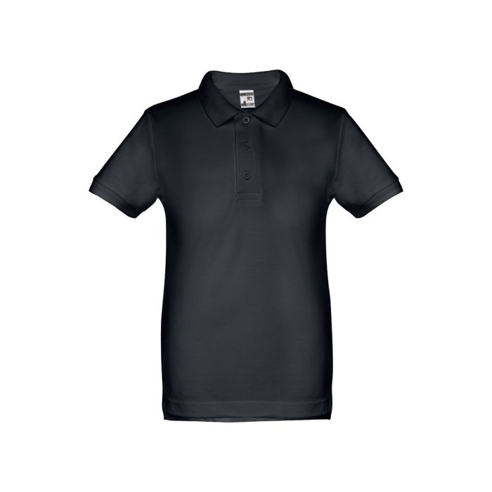 Polo unisex pentru copii din 100% bumbac pique (195 g/m²). Guler si mansete striate, fenta cu 3 nasturi. Slituri laterale la terminatie și un nasture suplimentar pe cusătura interioară. Marimi: 2, 4, 6, 8, 10, 12