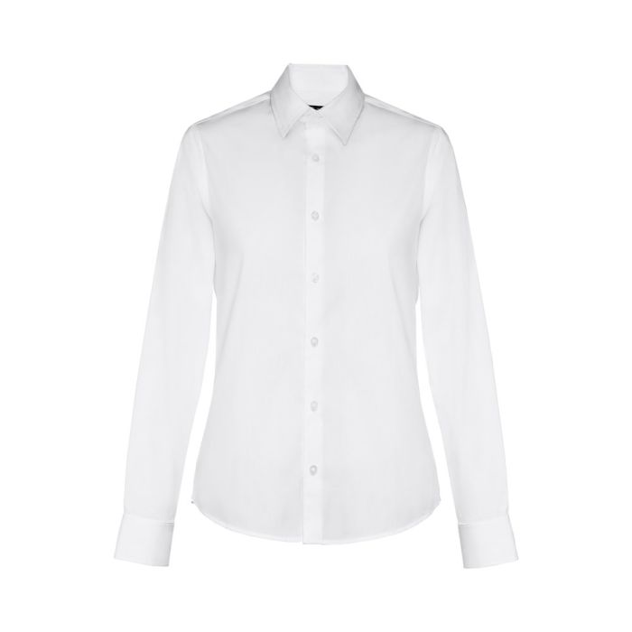 Cămașă pentru dame de poplin din 68% bumbac, 28% poliamidă și 4% elastan (115 g/m²). Maneca lunga. Model fit. Camasa cu 7 nasturi. Manșete reglabile cu 1 nasture. Model fit cu 2 pliuri pe spate Marimi: S, M, L, XL, XXL