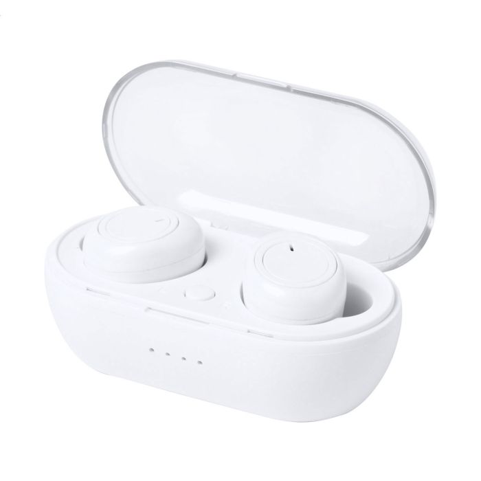 Căști cu bluetooth și hands-free în cutie din plastic. Cablu de încărcare USB inclus.