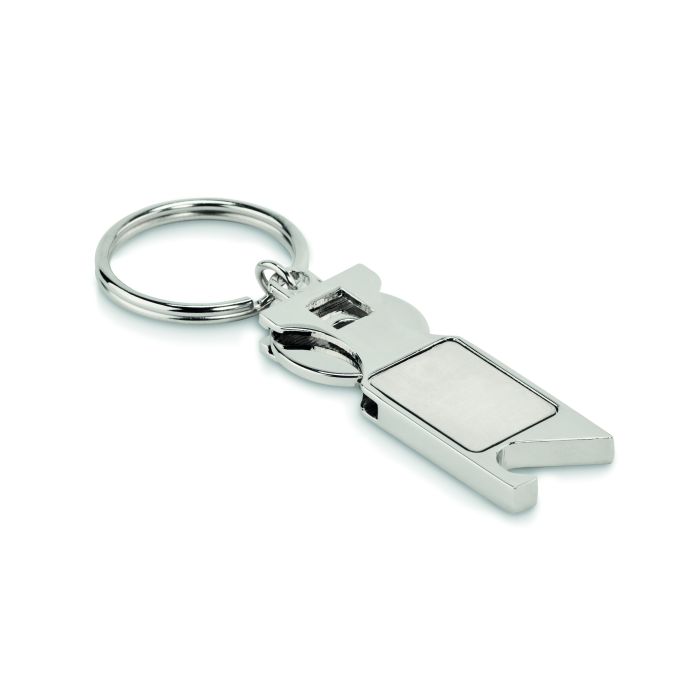 Breloc de chei din aliaj de zinc, include jeton euro pentru carucioare și desfăcător de sticle.